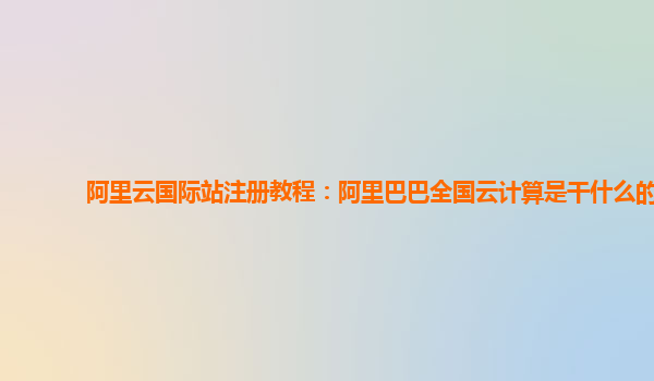 阿里云國際站注冊教程:阿里巴巴全國云計算是干什么的