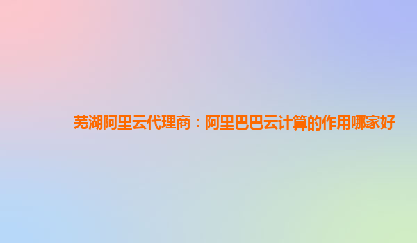 蕪湖阿里云代理商:阿里巴巴云計算的作用哪家好