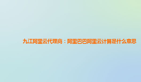 九江阿里云代理商:阿里巴巴阿里云計算的意義與優(yōu)勢