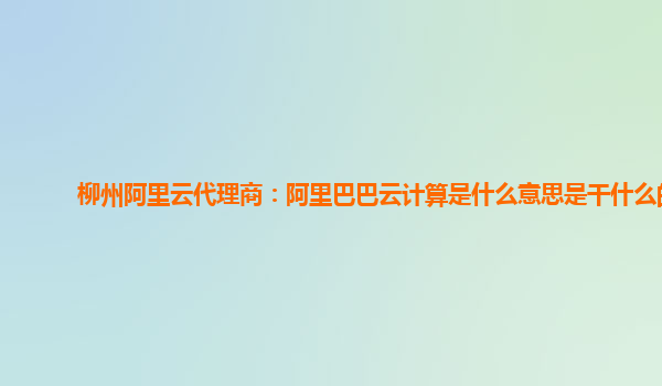柳州阿里云代理商:阿里巴巴云計(jì)算是什么意思?是干什么的?