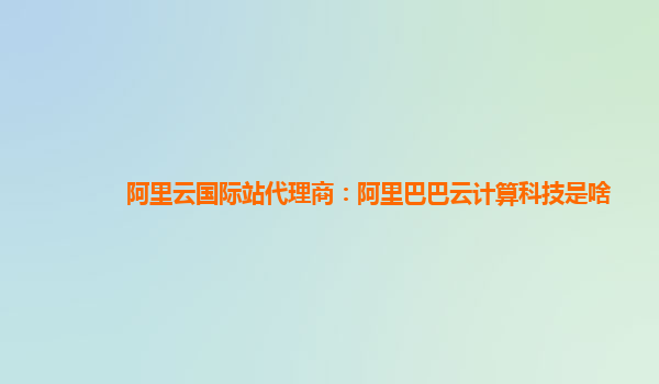 阿里云國(guó)際站代理商:阿里巴巴云計(jì)算科技