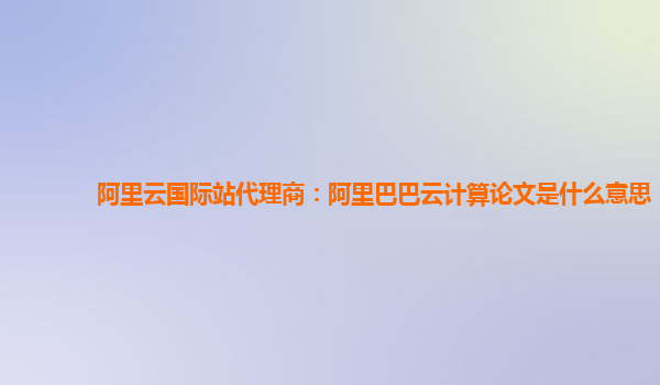 阿里云國(guó)際站代理商:阿里巴巴云計(jì)算論文