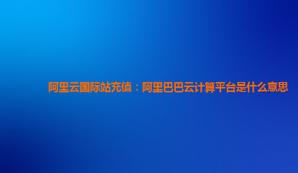 阿里云國際站充值:阿里巴巴云計算平臺的優(yōu)勢與應(yīng)用