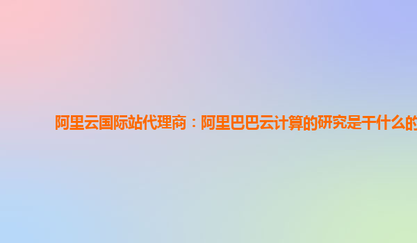 阿里云國(guó)際站代理商:阿里巴巴云計(jì)算的研究與應(yīng)用