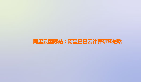 阿里云國際站:阿里巴巴云計(jì)算研究