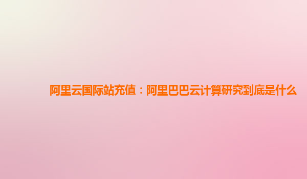阿里云國際站充值:阿里巴巴云計算研究到底是什么