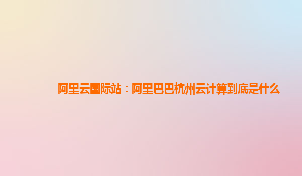 阿里云國(guó)際站:阿里巴巴杭州云計(jì)算到底是什么