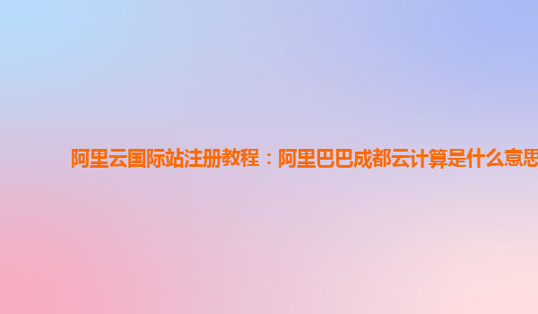 阿里云國際站注冊教程:阿里巴巴成都云計算的優(yōu)勢與好用之處