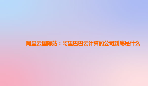 阿里云國際站:阿里巴巴云計算的公司到底是什么