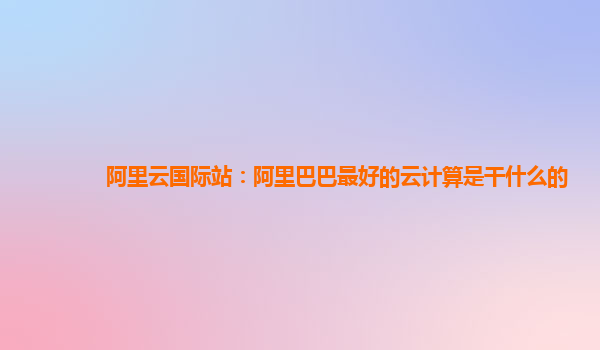 阿里云國(guó)際站:阿里巴巴最好的云計(jì)算是干什么的