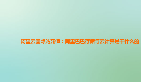 阿里云國際站充值:阿里巴巴存儲與云計算是干什么的