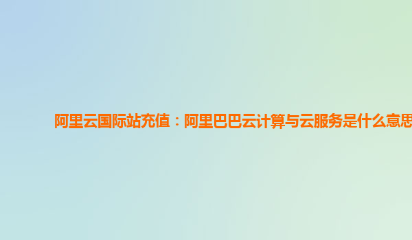 阿里云國際站充值:阿里巴巴云計(jì)算與云服務(wù)的優(yōu)勢與應(yīng)用