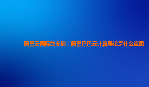 阿里云國際站充值:阿里巴巴云計算導(dǎo)論