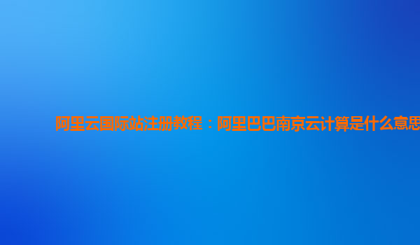 阿里云國際站注冊教程:阿里巴巴南京云計(jì)算的優(yōu)勢與應(yīng)用