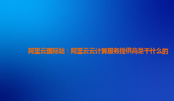 阿里云國(guó)際站:阿里云云計(jì)算服務(wù)提供商是干什么的