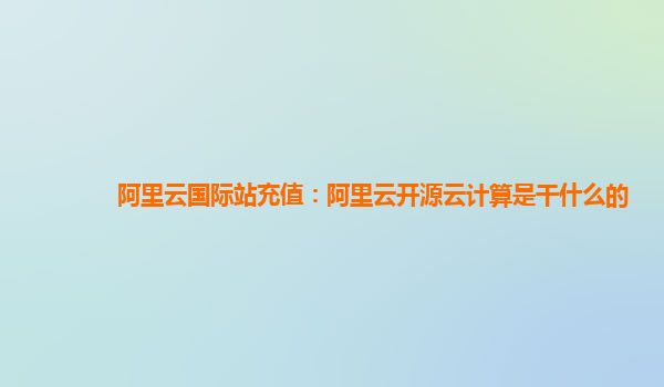 阿里云國際站充值:阿里云開源云計算是干什么的