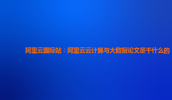 阿里云國際站:阿里云云計算與大數(shù)據(jù)論文是干什么的