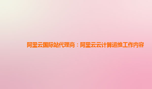 阿里云國(guó)際站代理商:阿里云云計(jì)算運(yùn)維工作內(nèi)容