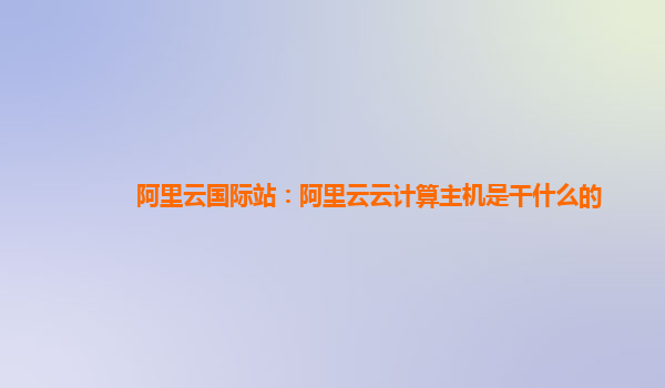 阿里云國際站:阿里云云計(jì)算主機(jī)是干什么的