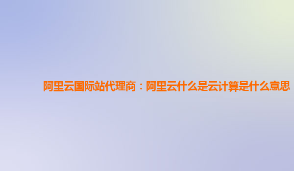 阿里云國際站代理商:阿里云什么是云計算是什么意思