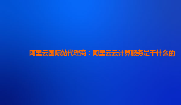 阿里云國際站代理商:阿里云云計算服務(wù)是干什么的