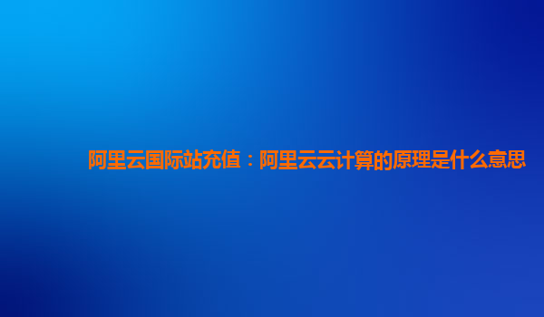 阿里云國際站充值:阿里云云計算的原理是什么意思
