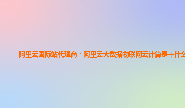 阿里云國(guó)際站代理商:阿里云大數(shù)據(jù)物聯(lián)網(wǎng)云計(jì)算是干什么的