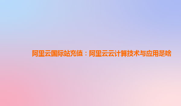 阿里云國(guó)際站充值:阿里云云計(jì)算技術(shù)與應(yīng)用
