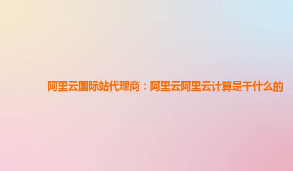 阿里云國(guó)際站代理商:阿里云與阿里云計(jì)算的優(yōu)勢(shì)