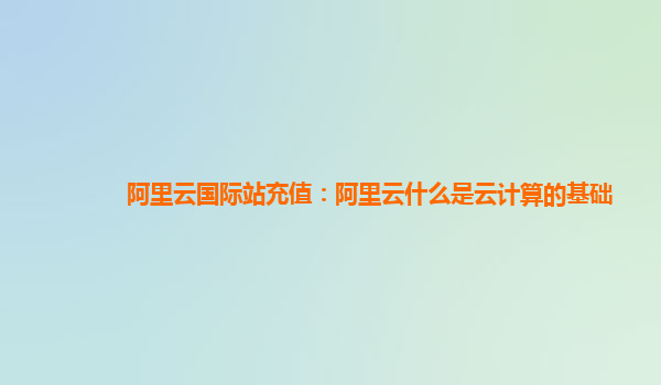 阿里云國(guó)際站充值:阿里云什么是云計(jì)算的基礎(chǔ)