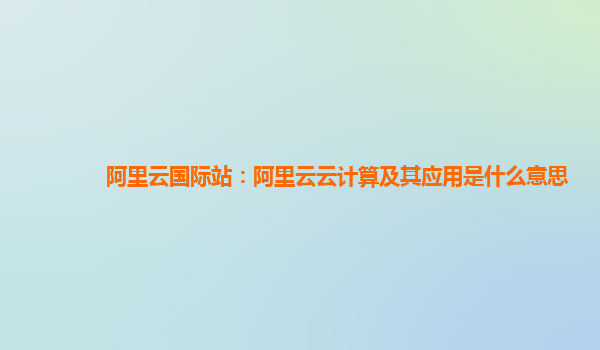 阿里云國(guó)際站:阿里云云計(jì)算及其應(yīng)用