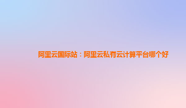阿里云國際站:選擇阿里云私有云計算平臺的優(yōu)勢