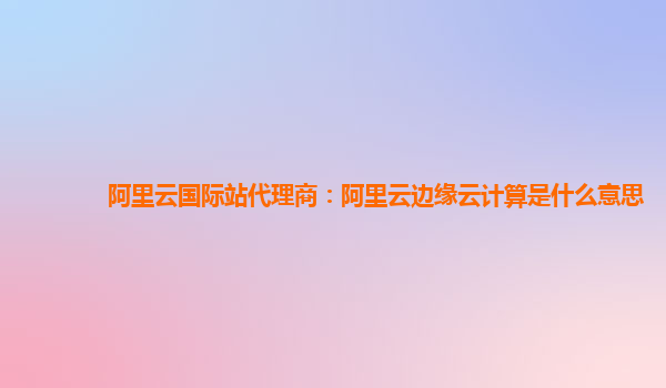阿里云國際站代理商:阿里云邊緣云計算是什么意思?
