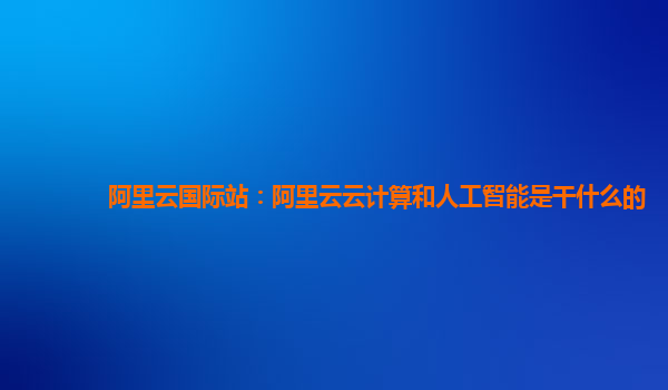 阿里云國際站:阿里云云計算和人工智能是干什么的?