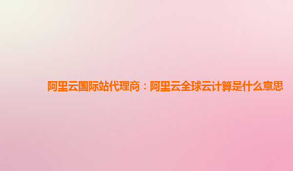 阿里云國(guó)際站代理商:阿里云全球云計(jì)算服務(wù)的優(yōu)勢(shì)與應(yīng)用