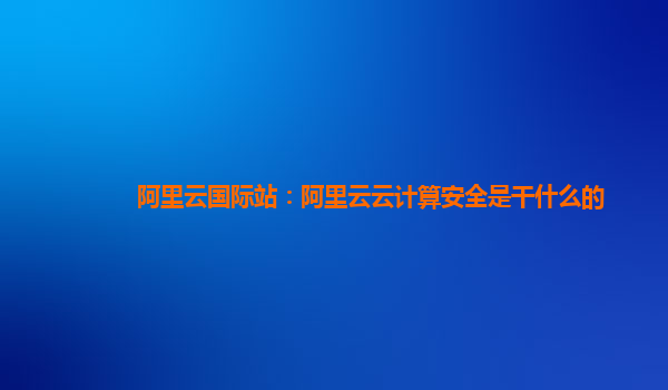 阿里云國(guó)際站:阿里云云計(jì)算安全是干什么的