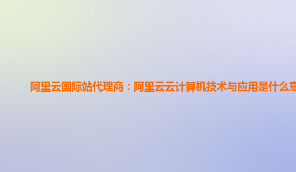 阿里云國際站代理商:阿里云云計算機技術(shù)與應(yīng)用