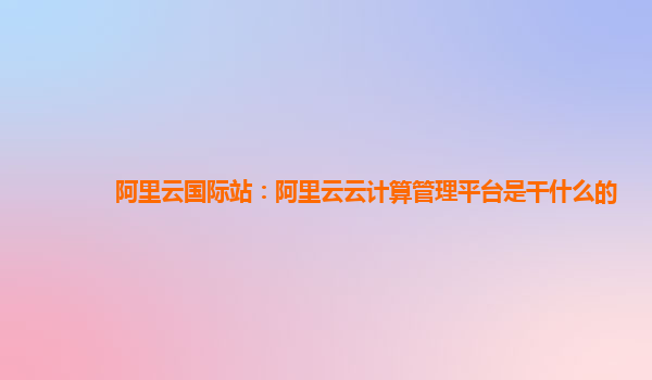 阿里云國際站:阿里云云計算管理平臺是干什么的