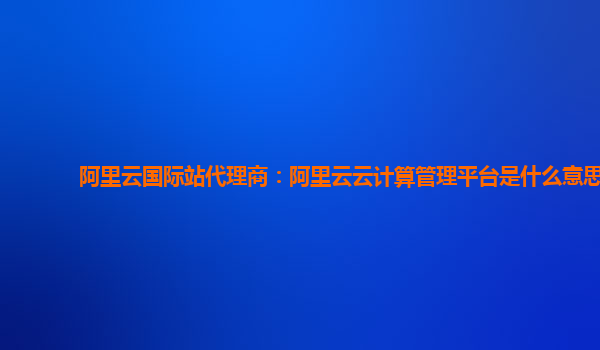 什么是阿里云云計算管理平臺?