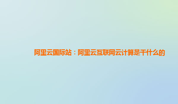 阿里云國際站:阿里云互聯(lián)網(wǎng)云計算是干什么的