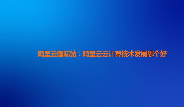 阿里云國(guó)際站:阿里云云計(jì)算技術(shù)發(fā)展怎么樣?
