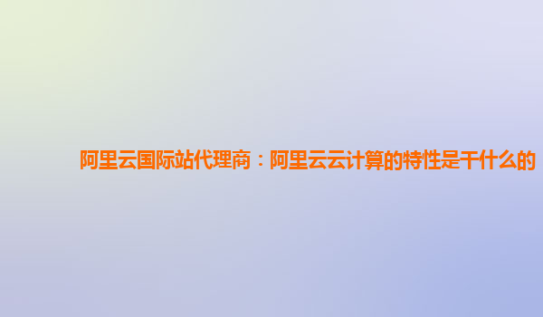 阿里云國際站代理商:阿里云云計(jì)算的特性與優(yōu)勢
