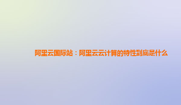 阿里云國際站:阿里云云計算的特性到底是什么
