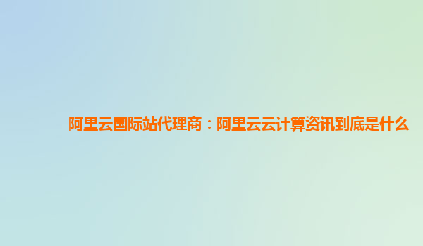 阿里云國際站代理商:阿里云云計算資訊到底是什么