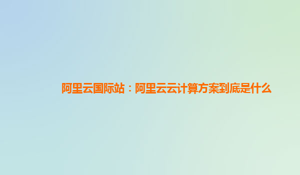 阿里云國際站:阿里云云計(jì)算方案到底是什么