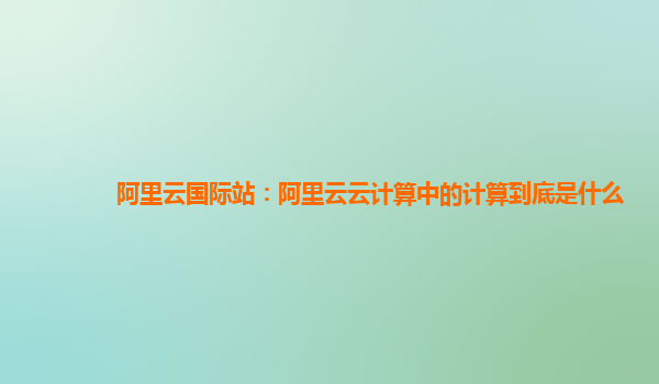 阿里云國際站:阿里云云計算中的計算到底是什么