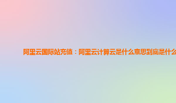 阿里云國際站充值:阿里云計算云是什么意思到底是什么