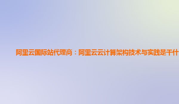 阿里云國際站代理商:阿里云云計算架構(gòu)技術(shù)與實(shí)踐
