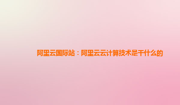 阿里云國際站:阿里云云計算技術(shù)是干什么的