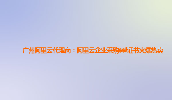 廣州阿里云代理商:阿里云企業(yè)采購SSL證書火爆熱賣